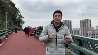 虎头岩公园上下高差超过100米,游人身处其间好似站在悬崖边上,跟着主播从步道往下看,有种置身“空中公园”的魔幻感。公园沿途视野开阔,更是串联起各种山城独特的风景:嘉陵江在步道下方闪着波光,红岩村大桥在眼前推进建设,鸿恩寺遥遥矗立在山端。