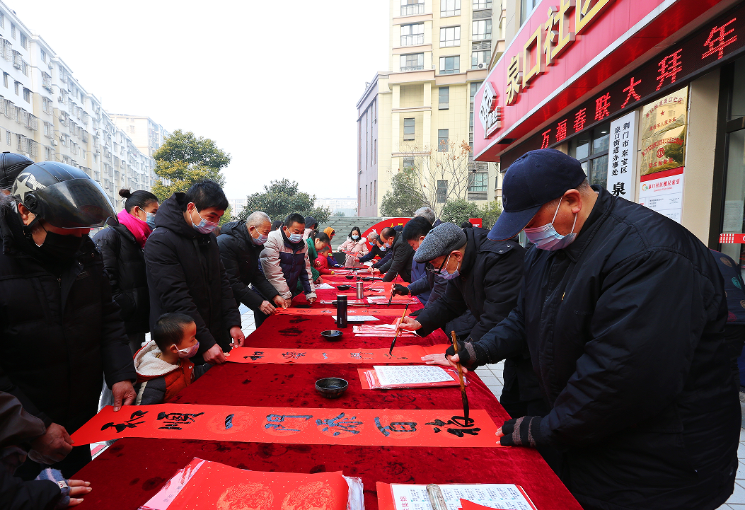 近段时间,由荆门晚报、荆门市老年书画家协会组织的“万福春联大拜年”活动分别走进名泉社区、泉口社区、苏畈桥社区、虎牙关社区,共为居民书写春联1500余副、“福”字1000余个、“廉”字500余个。