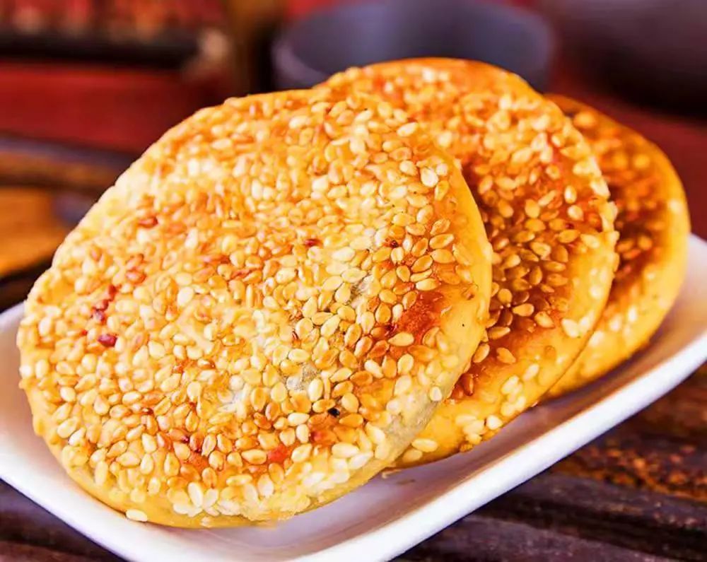 胡教授:唐朝人最喜欢的胡麻饼,也叫胡饼。白居易就有一首诗叫《寄胡饼与杨万州》:胡麻饼样学京都,面脆油香新出炉。说的是白居易制作胡麻饼的手艺是在长安的时候学来的,新鲜出炉的胡麻饼,面皮酥脆,闻起来一股油香味。胡饼在唐朝还有了新品种,就是在饼中放入各种馅料,很像我们今天常成的馅饼。