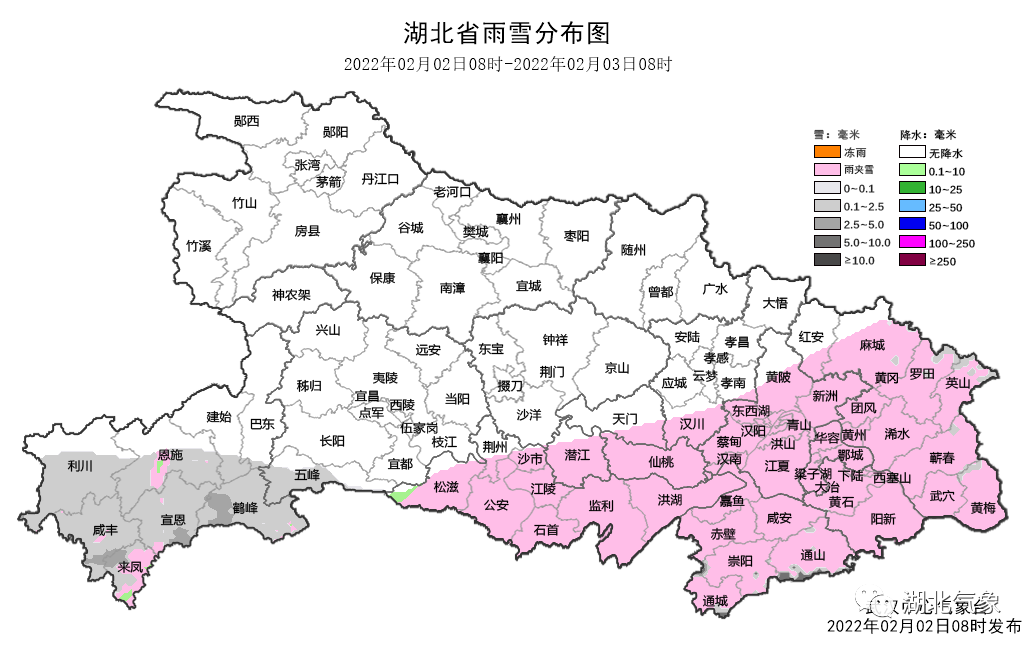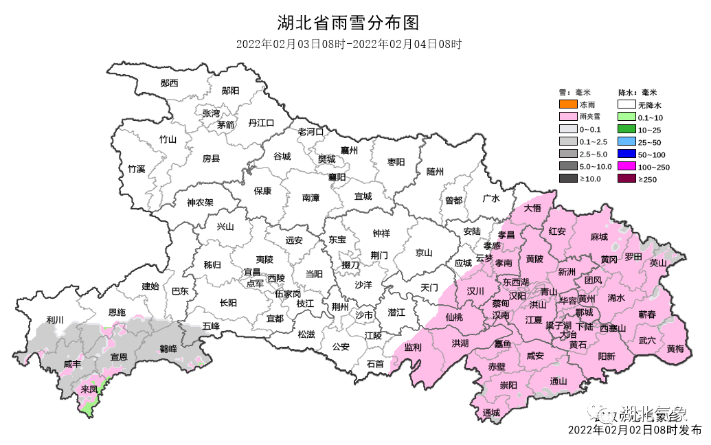 预计今天到明天白天,湖北省南部和东部雨雪天气持续,其中鄂东南小到中雨雪,其他地区小雨雪,高海拔地区小到中雪,局部大雪。