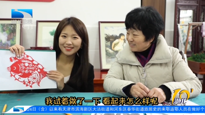 “我知道中国人春节有在窗户上贴窗花的传统习俗,我现在来到了枝江市的一个剪窗花的工坊,你们不好奇如此栩栩如生的窗花,是如何被制作出来的吗?”看完鱼糕制作,陈荣恩又来到了手工工作坊。
