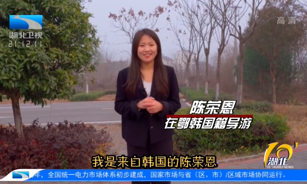 在枝江金湖湿地公园,在鄂韩国籍导游陈荣恩向我们介绍道,“大家好,我是来自韩国的陈荣恩,我现在在宜昌市的一家旅行社工作,我平常喜欢拍摄上传一些有趣的视频,今天我来到了距离宜昌市一个小时车程的枝江市,将会带领大家感受到不一样的体验。”
