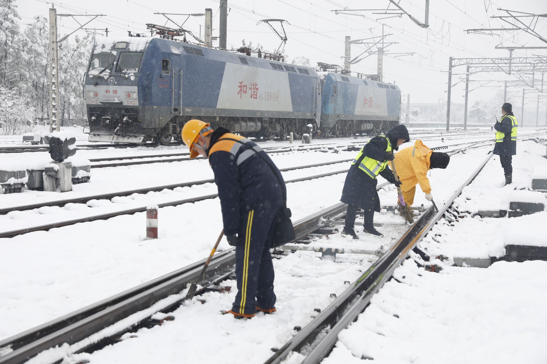 为有效应对此次雨雪天气,武汉铁路部门提前预警、提早部署,第一时间采取安全应对措施,2月6日起,连夜组织工务、电务、供电、车辆等专业单位,成立扫雪除冰专班,重点对道岔区段、轨道线路、接触网、变配电所、动车组以及相关设备设施进行扫雪除冰,保障设备运行正常。武铁各大火车站及时清扫站台积雪,在进出站主要通道、露天步梯台阶等关键场所铺设防滑垫、麻布袋等防滑物品,同时加强旅客乘降组织引导,积极提供平安出行保障。武汉、襄阳、十堰、麻城以及豫南信阳等地车站升级客运服务措施,加强候车室空调设备的调控和热水供应,组织“党团员突击队”“志愿者服务队”做好重点旅客帮扶工作,确保旅客出行安全有序。武汉客运段、襄阳客运段、武汉动车段、武昌客车车辆段等单位列车工作人员,全力做好列车上的空调供暖、餐饮供应等服务保障,让旅客在雨雪降温天气下温馨出行。