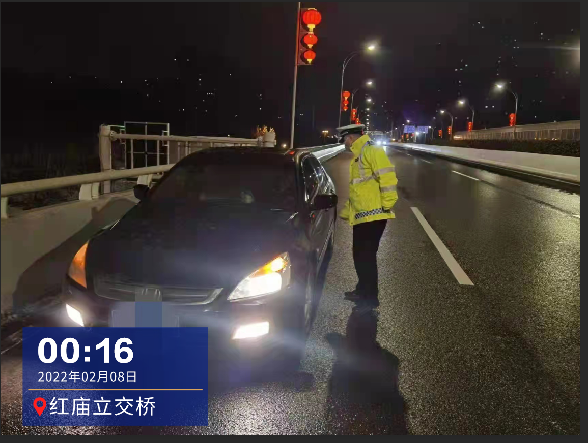 8日0时16分,市交管局直属大队一中队中队长周海涛带队巡逻至红庙立交附近时,发现一台小车停在路边,“明显感到驾驶员十分疲惫。”经了解,饶某因长时间连续驾车犯困打盹,交警对其进行批评教育,督促其赶紧驶离环线就近休息。