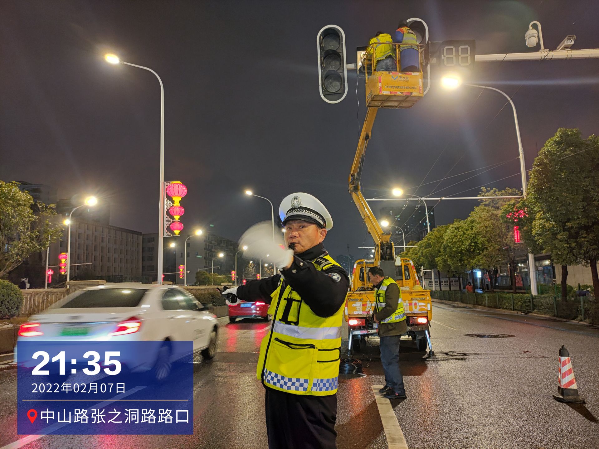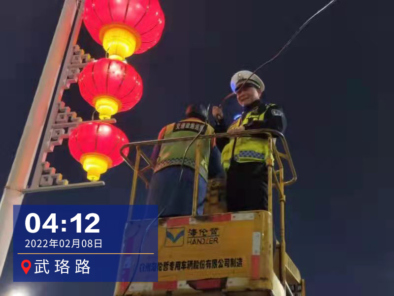 “撒了盐,路上就不会结冰了。”21时30分,交警刘五桥配合环卫部门在人行天桥除冰撒盐,融雪化冰,此时有位市民正下楼梯,他上前暖心提醒其沿着防滑草垫行走,并对移位的草垫重新铺垫,在中山路张之洞路路口,信号灯突然出现故障,“绝不让故障过夜。”刘五桥协助抢修,信号灯很快恢复正常。
