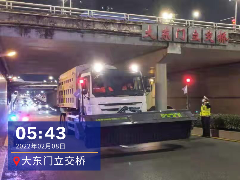 凌晨2时许,交警巡逻至雄楚高架时发现环卫工人正清理路边两侧少量积雪,“你们辛苦了!”孙警官拿起铁锹和师傅们一同忙活起来。