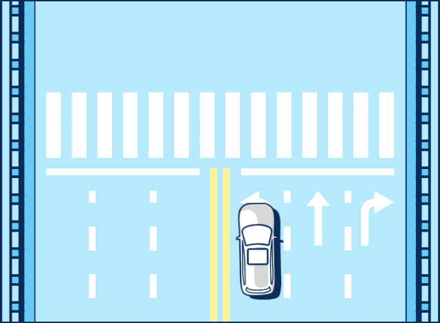掉头一定要避开人行横道。如果路口有左转导向车道,要沿着该车道掉头;如果左转车道停止线前和人行横道之间是虚线,此处也可掉头。
