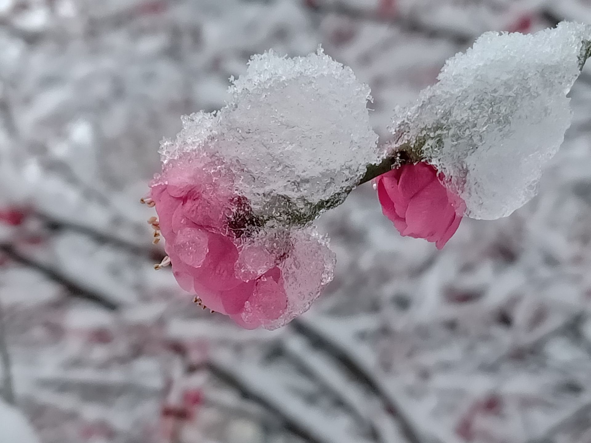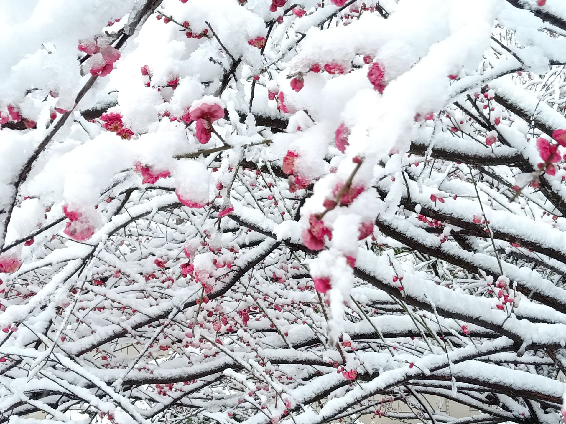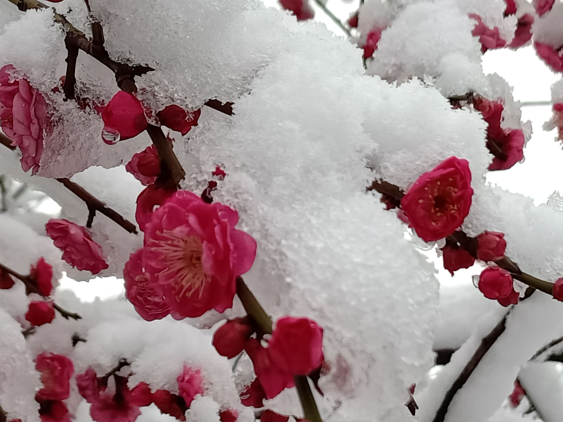 2月7日,一场纷纷扬扬的瑞雪将湖北武汉装扮得分外妖娆,雪中傲梅格外引人注目。梅花花瓣润泽透明,像琥珀或碧玉雕成,冰清玉洁,傲雪绽放,宛如一副生动旖旎的踏雪寻梅图。