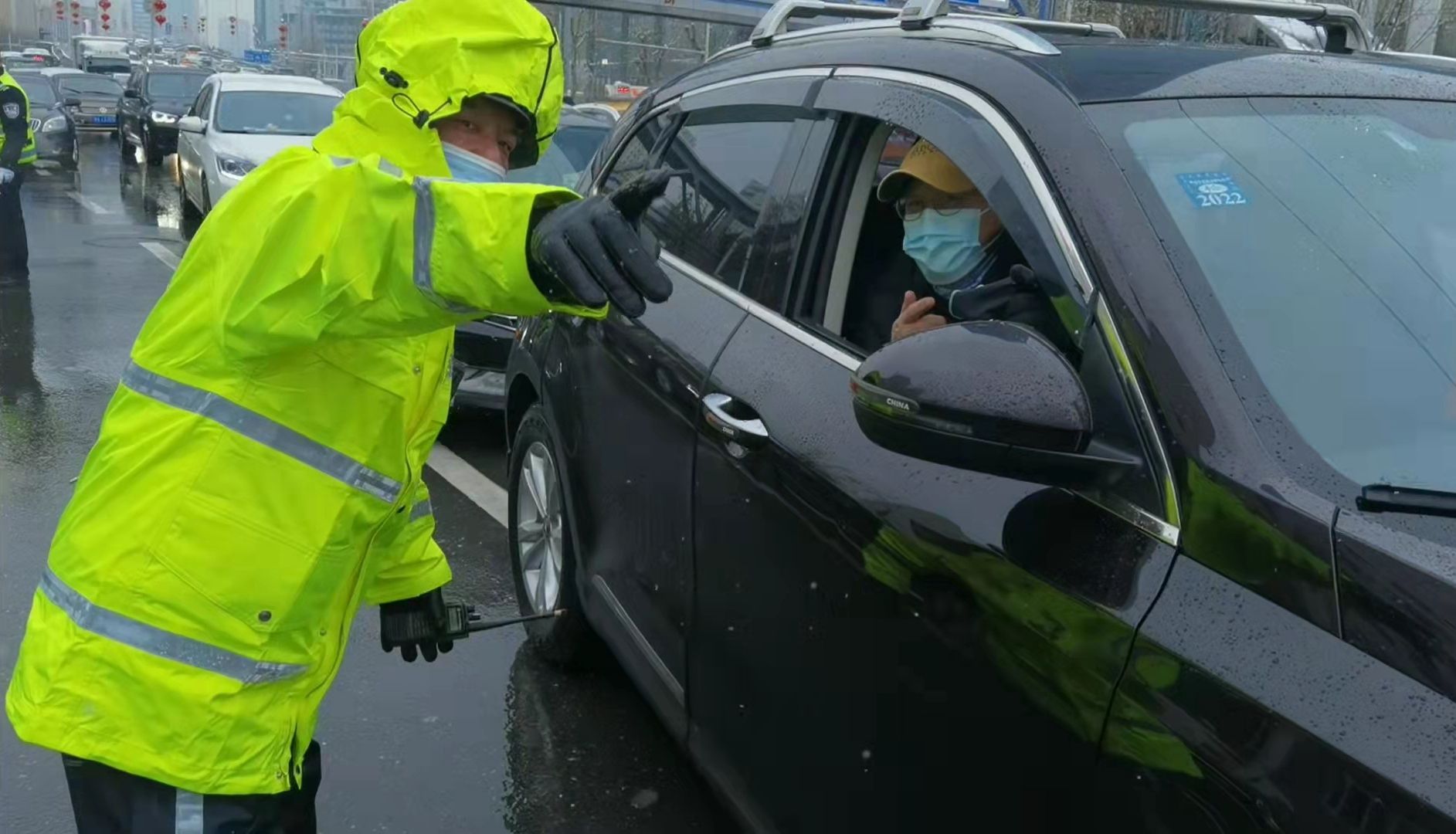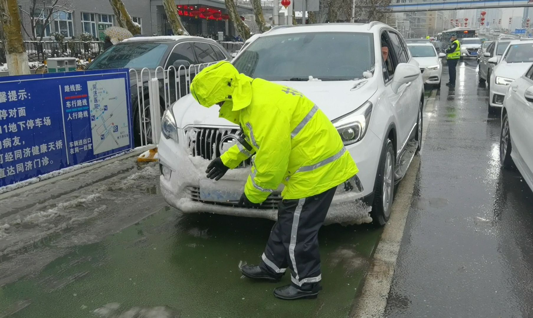 “先生,您的车不能在机动车道上停,会影响到别人,前面有专门的临时落客区,也有停车场。”“先生,您的车灯和车牌被雪挡住了,会有安全隐患,我帮您清理一下。”