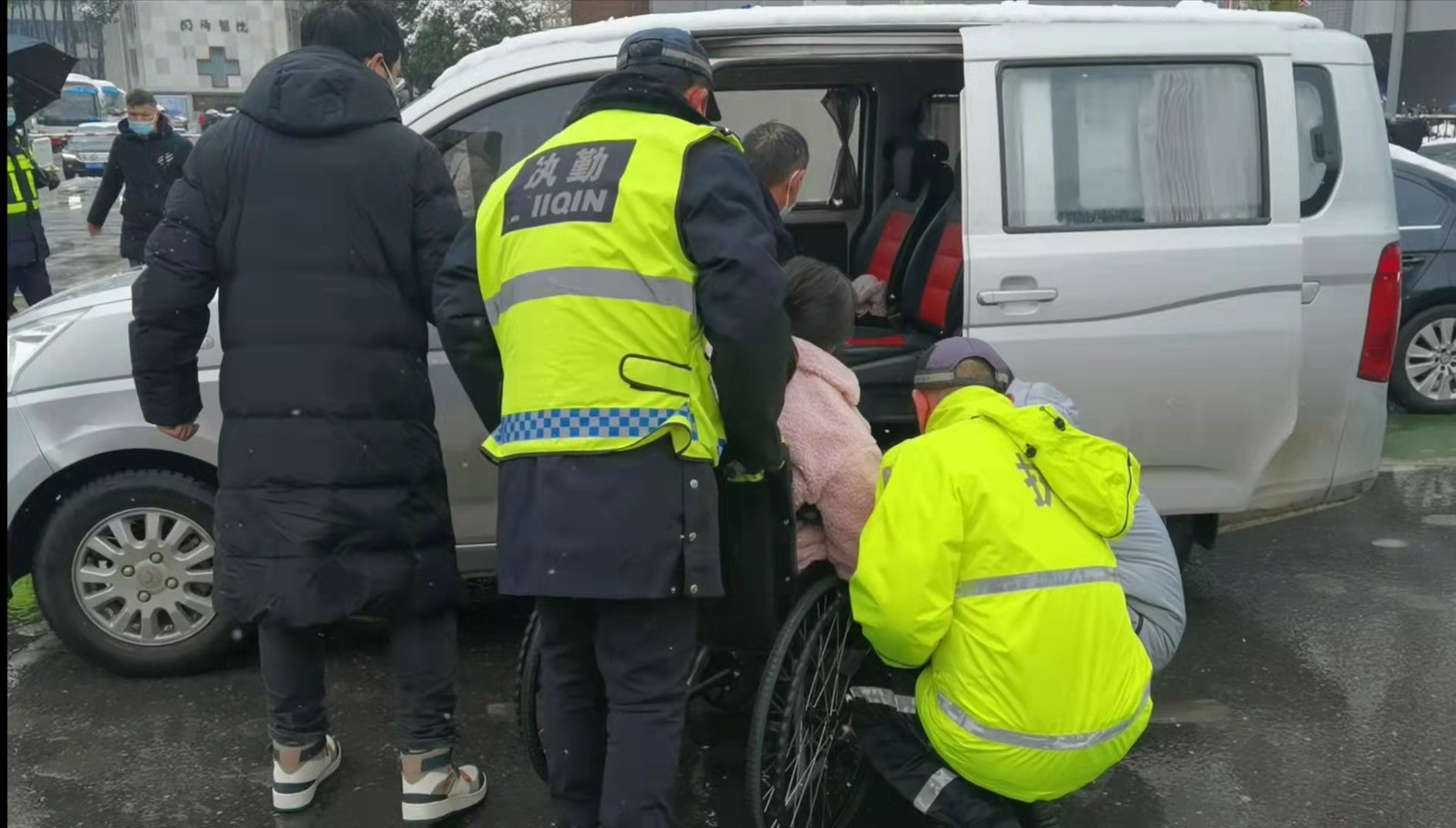 2月7日的大雪天里,硚口交通大队辅警班长熊学利,跟同事周庆明、欧阳文哲一起,在同济医院门口疏导交通,维护排队车辆的秩序。他们在两三百米的范围内不停往来奔走,几句话往往要重复几百遍,耐心劝导,热心助人,遇到行动不便的病人,就立马跑上前帮忙。