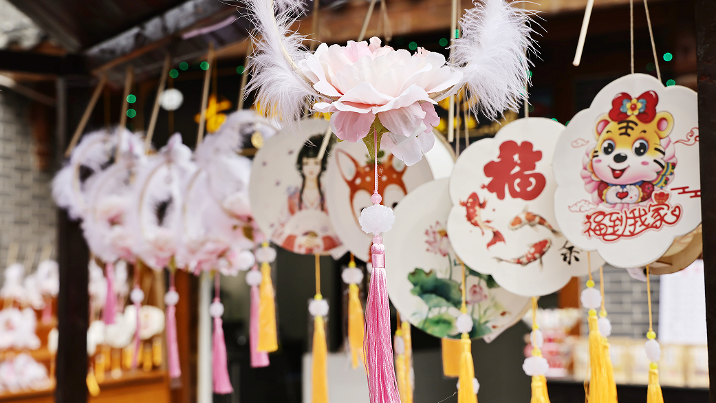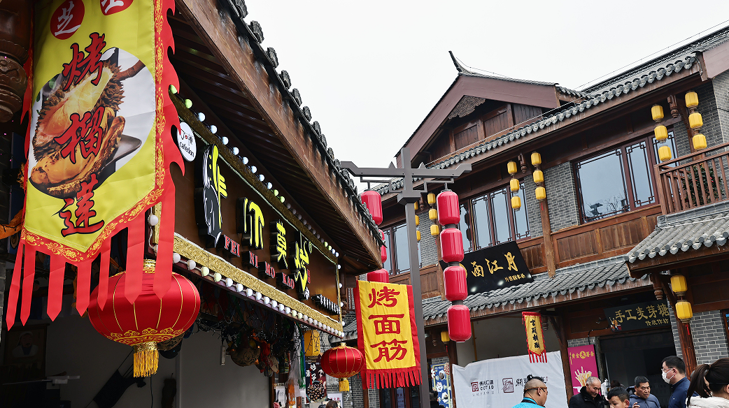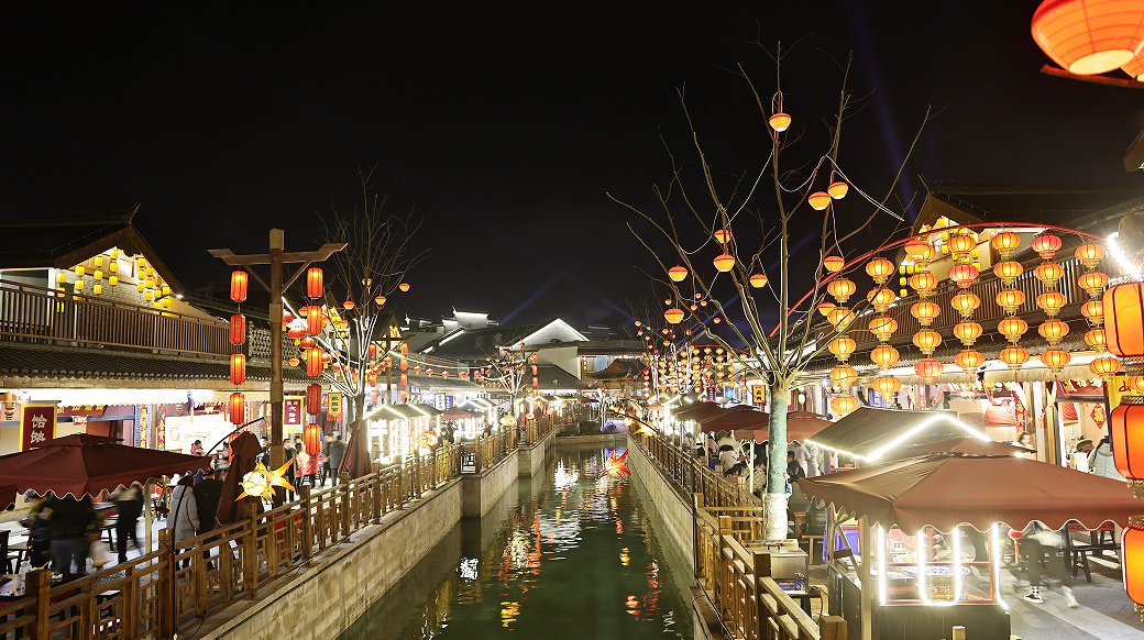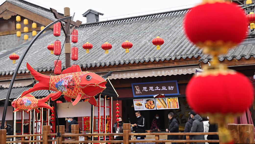 走进关圣古镇,浓郁的年味扑面而来。大红灯笼高高挂,红黄相间的鱼儿在空中自由翱翔,坊连着坊,亭台楼阁到处可见。街道两旁为开放式街区,云集各式商家。烤榴莲,烤面筋,炸土豆片,撸串,手工水饺,山西biangbiang面,襄阳牛肉面,老长沙臭豆腐,奶茶,糖葫芦……酸甜苦辣甜与咸,煎炸烧炒烤,人生百味这里应有尽有。时光杂货铺里杂货多,小时候的味道蕴藏其中。虎头鞋,剪纸,刺绣等老式物件,走进小店一览无余尽收眼底。尽管寒风凛冽,关圣古镇的热浪不减。夜幕降临,来关圣古镇游玩的人依然络绎不绝。犹如天上的街市一般,火树银花不夜天。