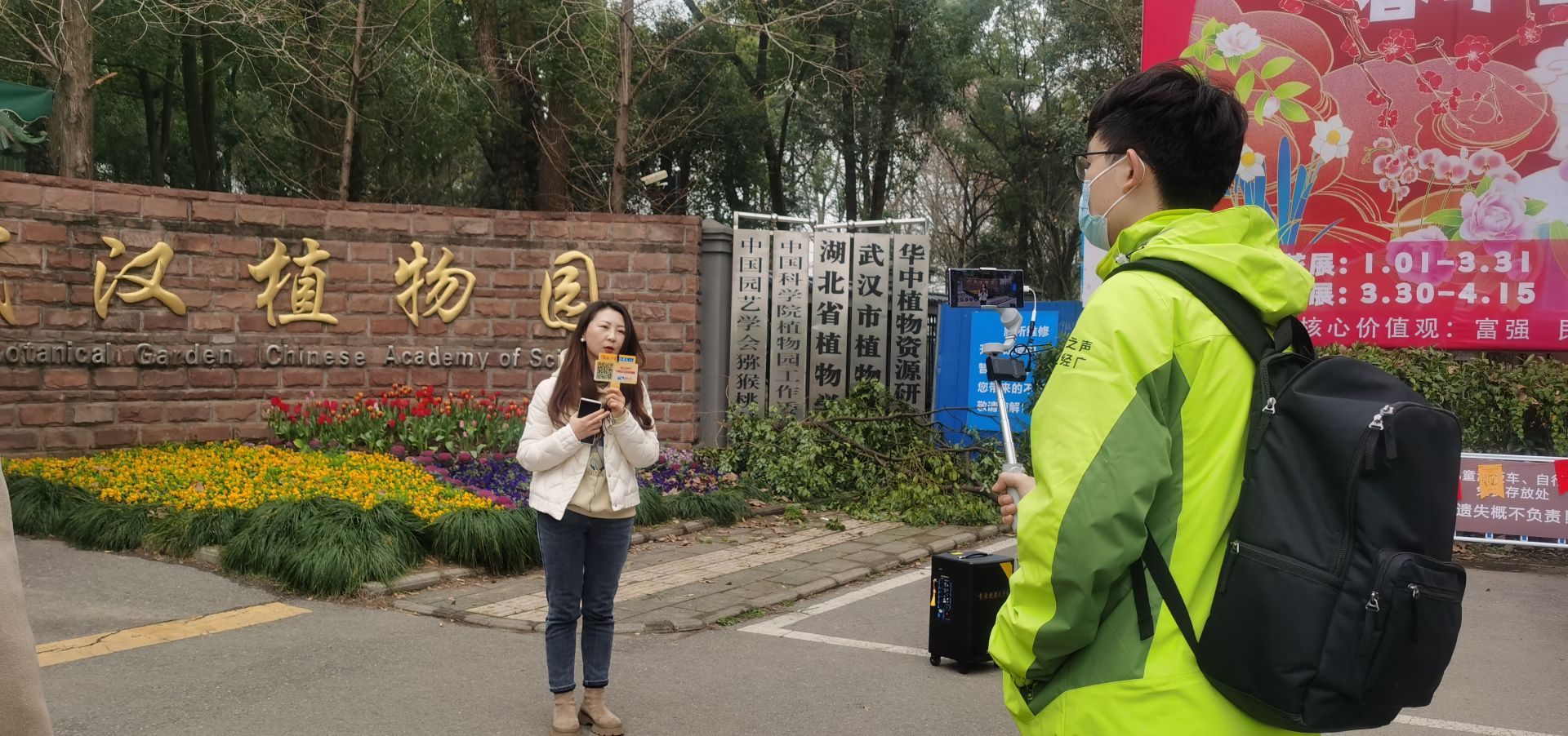 14号,在花团锦簇中,湖北广播电视台长江云老友频道“你好!虎年”直播团队来到了中国科学院武汉植物园。