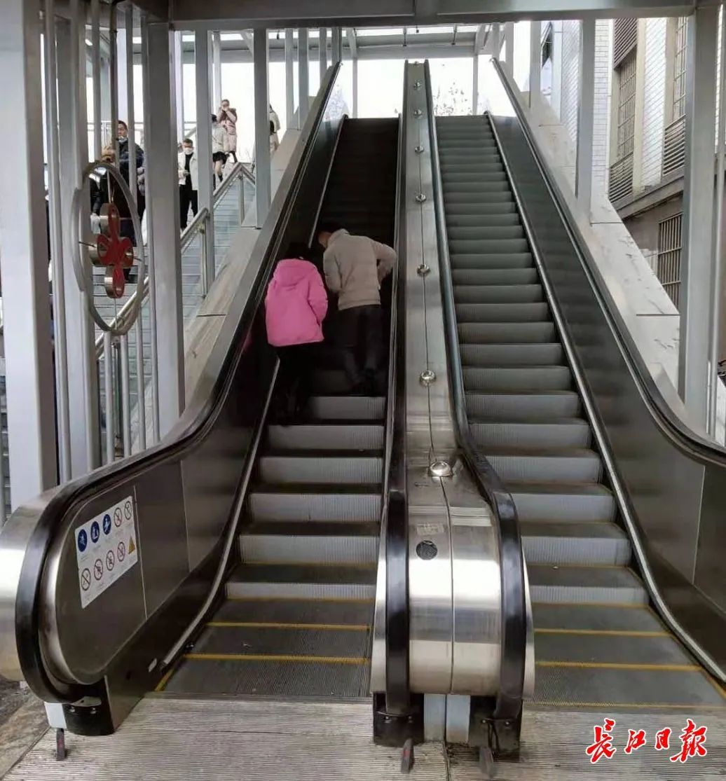 此外,汉口万松园横路人行天桥手扶电梯、马场角路人行天桥垂直电梯、马场路人行天桥垂直电梯、绿缘路人行天桥垂直电梯均正常运行,一些老年人大都选择乘坐电梯上桥过街。