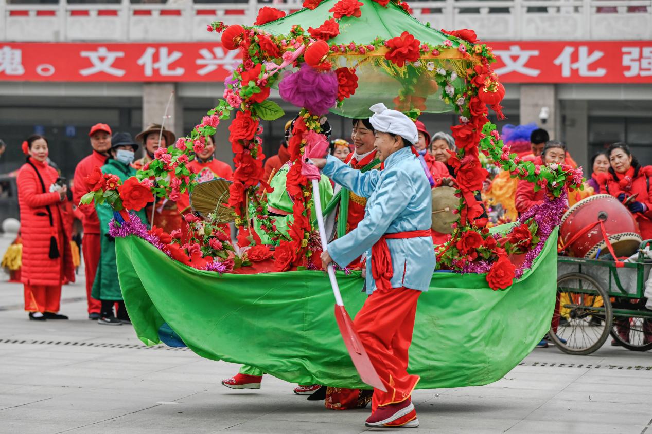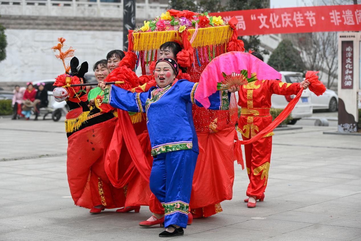 农历正月十五是中国传统佳节——元宵节,在湖北省南漳县,划旱船、打狮子、东巩高跷、犟 驴等一系列非遗民俗表演走上街头,以民俗文化表演这一群众喜闻乐见的方式,欢天喜地“闹”元宵、庆佳节。