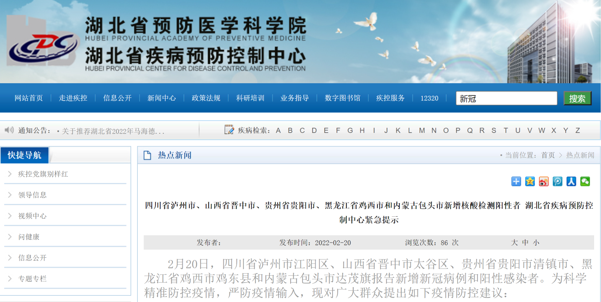 一、2022年2月16日(含)以来有四川省泸州市江阳区、2月17日(含)以来有山西省晋中市太谷区和贵州省贵阳市清镇市、2月5日(含)以来有黑龙江省鸡西市鸡东县、2月13日(含)以来有内蒙古包头市达茂旗旅居史的来鄂返鄂人员在做好个人防护的情况下,请主动向当地社区进行健康申报,并配合当地疫情防控指挥部的所有防控措施。如有疑问或转码有误可拨打我省各级疾控中心咨询热线(号码附后)。