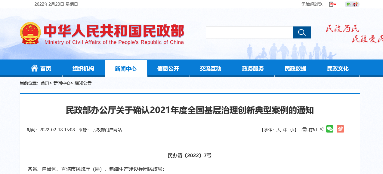 近日,民政部办公厅近日公布27个“2021年度全国基层治理创新典型案例”名单,向全国推广。湖北省宜都市“村规民约为农村社区治理添活力”成功入选。