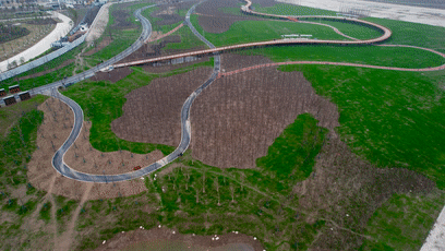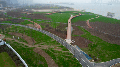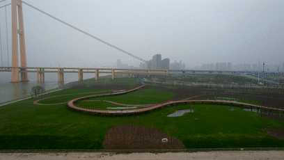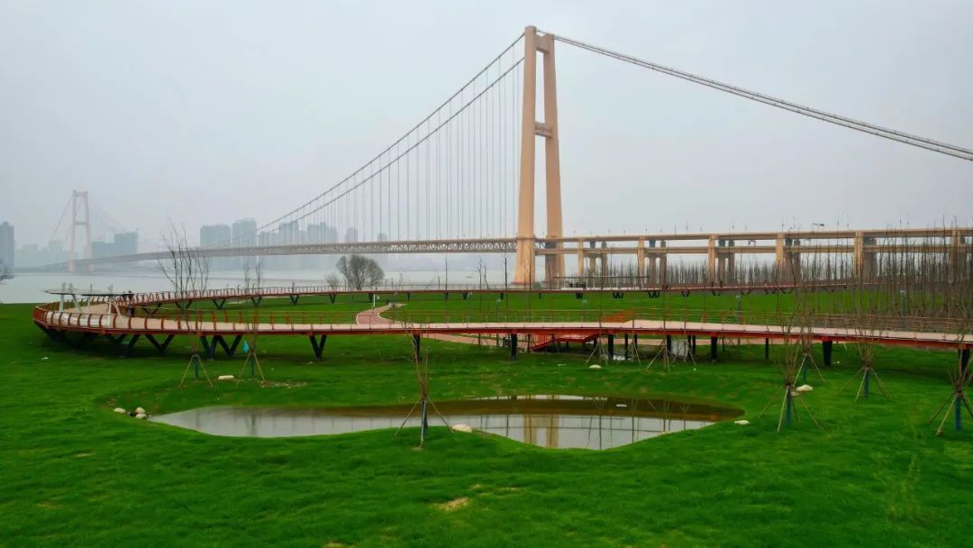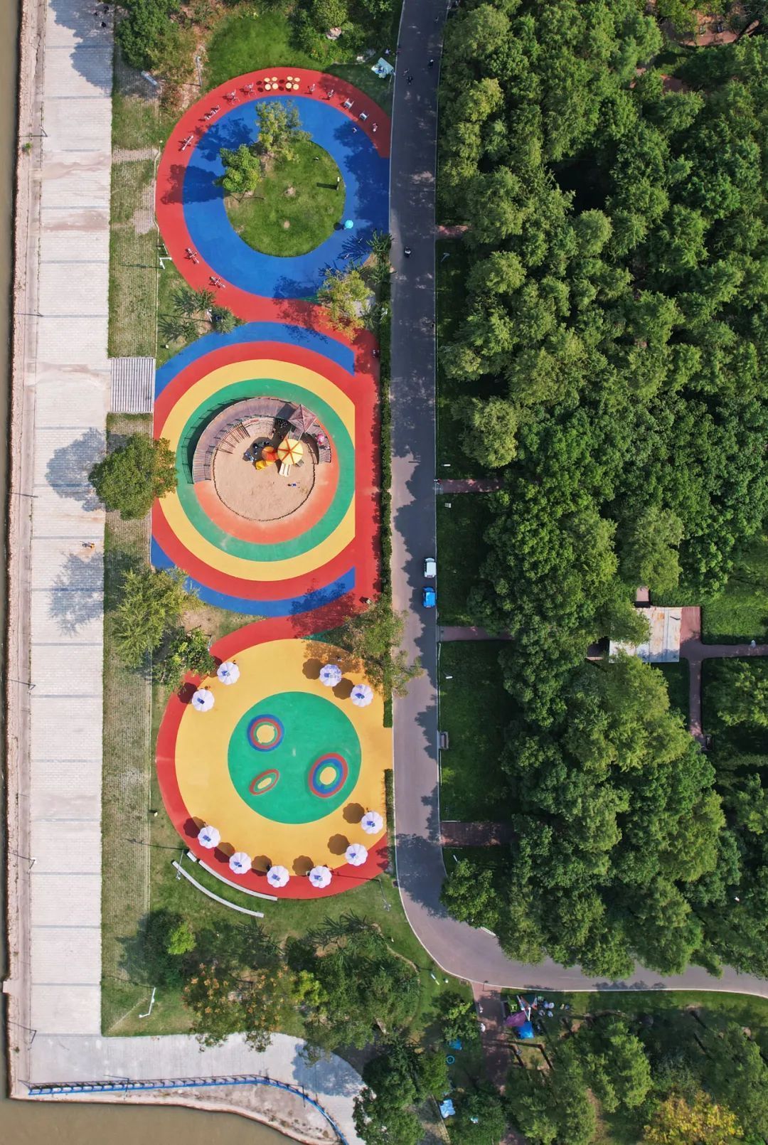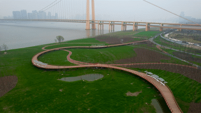 洪山江滩内的功能景观设置为“一廊两道两区六景”