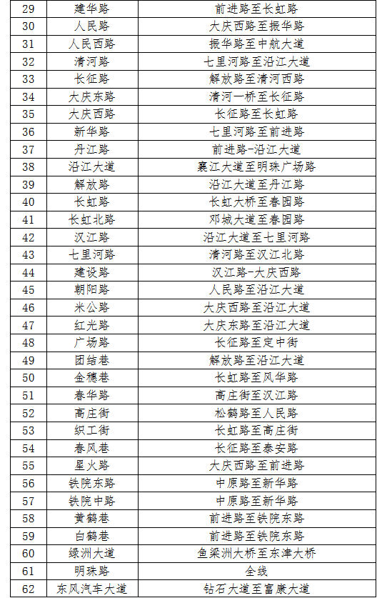 根据当天发布的《通告》,檀溪路、长虹路等71条道路为全时段严管路段,除依法施划的路内停车泊位外,全天24小时禁止机动车停放或临时停车。