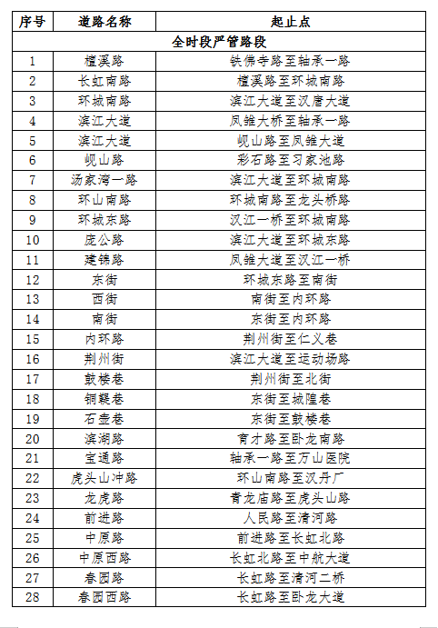 附件:襄阳市区严管路段名称及起止点(第一批)
