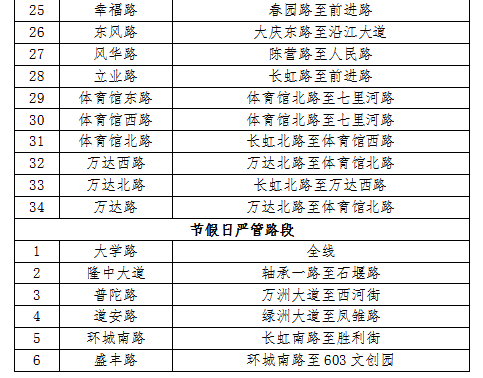 大学路、普陀路等6条道路为节假日严管路段,除依法施划的路内停车泊位外,国家法定节假日全天禁止机动车停放或临时停车。