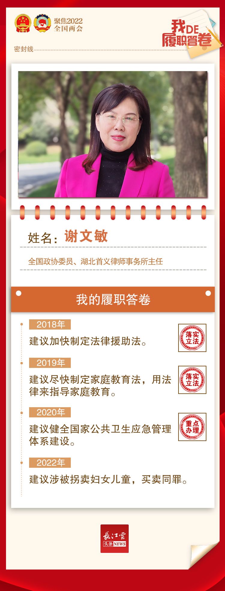 答卷人:全国政协委员 湖北首义律师事务所主任 谢文敏