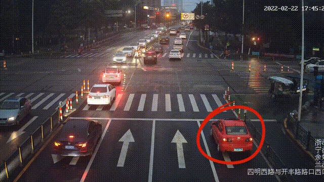 2月22日傍晚,宁波余姚万达广场十字路口,一名外卖小哥与一辆红色小轿车发生碰撞,外卖小哥连车带人倒地,一时还站不起来。