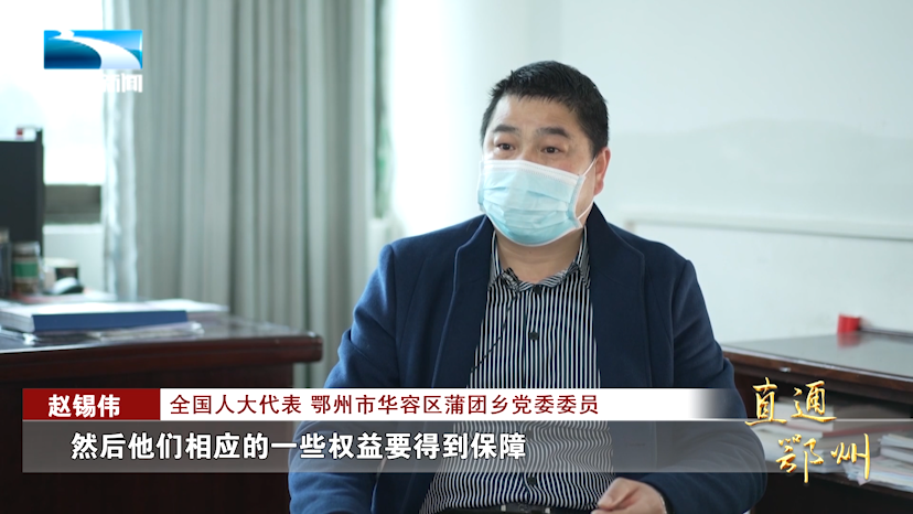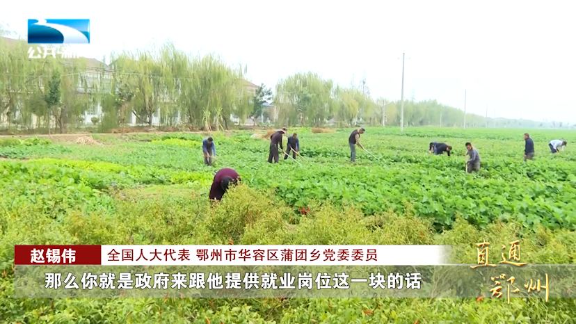全国人大代表、鄂州市华容区蒲团乡党委委员 赵锡伟:“你比如说城乡结合部,他的那些土地,都被一些产业、工业产业或者什么的,慢慢就把它分解了,分解了之后这些人,那他干什么呢?那你就是政府来跟他提供就业岗位这块的话还有一定的距离。”