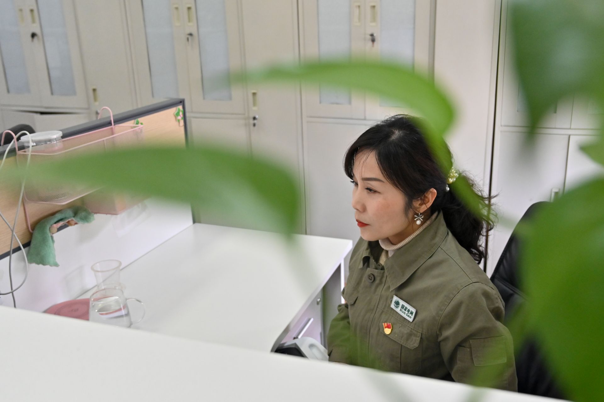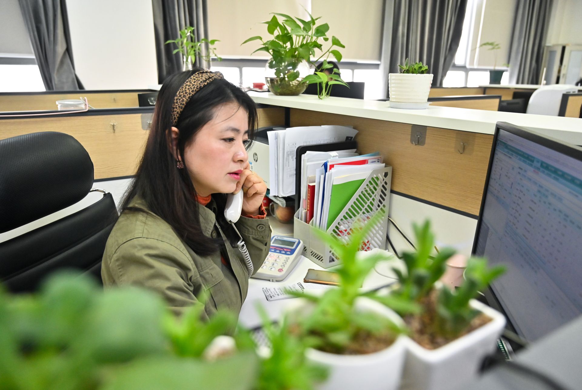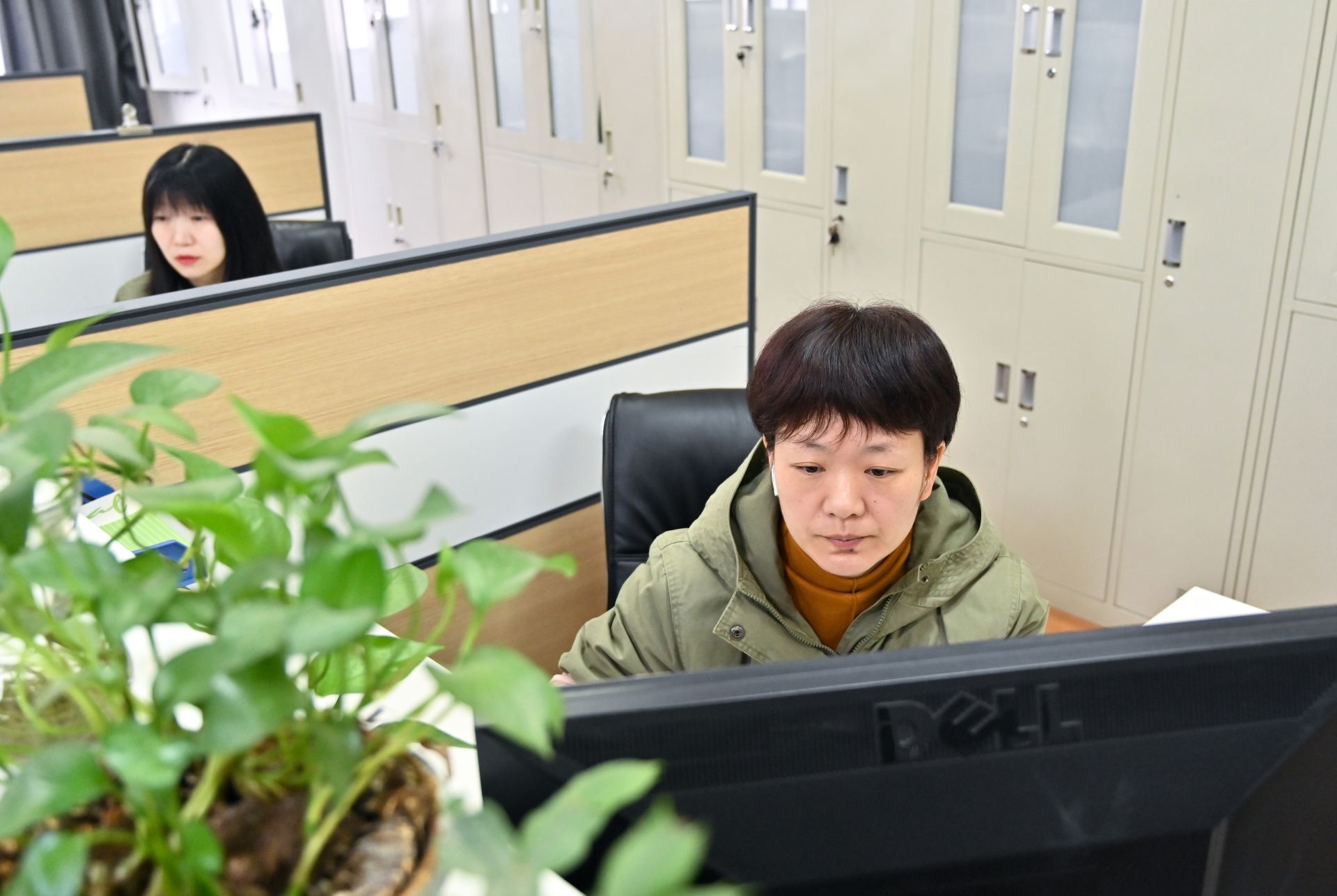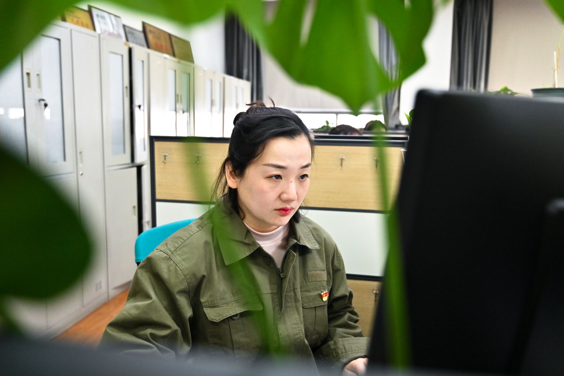 “系统又登不进去了,电脑网络好像出现了故障!”处理完自己手头上工作后,潘勰在张亚莉师傅的求助下,帮着解决了问题。看到张亚莉紧靠座椅双手用力往后伸展,潘勰习惯性地给她按了几下肩膀。“一坐就是三四个小时,大家腰椎和颈椎都不大好。”潘勰说。