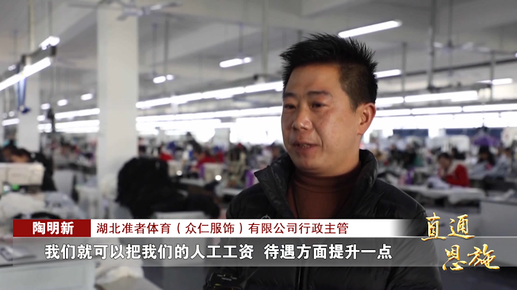 湖北准者体育(众仁服饰)有限公司行政主管 陶明新:“把这批节约的成本,接下来(用于)提升员工工资,待遇方面给他们提升一点,这样就更能让我们的员工稳得住。”
