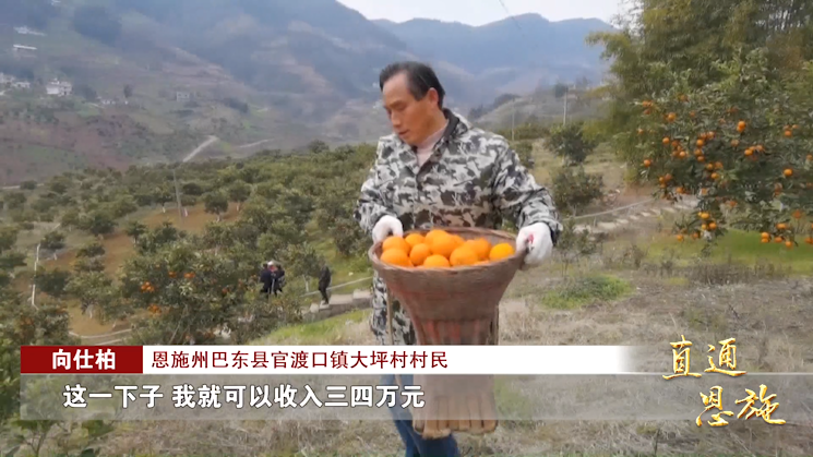 恩施州巴东县官渡口镇大坪村村民 向仕柏:“你看,我刚刚在修枝的时候,接了1000斤柑橘订单,定金打过来了,定金打过来了就赶紧打包,你赶紧去装。筹借资金六十多万元,心里感觉压力还是蛮大,通过承包、租赁土地,建起了150亩的柑橘园,现在一年四季都有水果。马上我的伦晚全部都要成熟了,这一下子我就可以收入三四万元,几年后我的伦晚全部丰产,光靠这一项我就可以收入近百万元。”