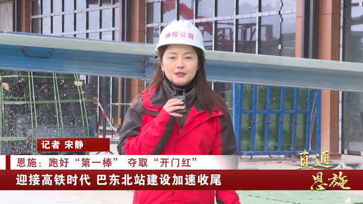 记者 宋静:“我现在是在郑万高铁巴东站的施工现场,目前站前广场和站房的主体工程已经完工,现在施工人员正在加班加点地对站前广场和站房的配套设施进行施工。据了解,巴东站的设计理念融入了土家特色文化,吊脚楼元素和古朴风格。”