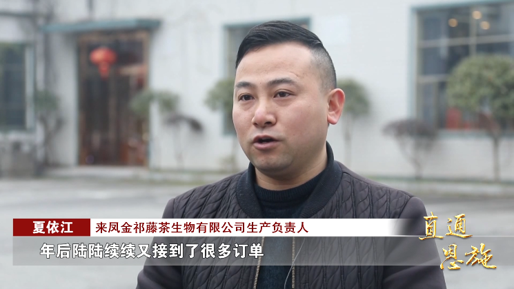 来凤金祁藤茶生物有限公司生产负责人 夏依江:“我们厂研发的品种很多,年前接到了很多订单,年后又陆陆续续接到了很多订单,生产任务非常紧张。大年初七我们全面复产,目前各个生产线开足马力,加急生产,为虎年开了个好头。”