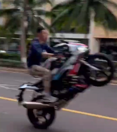 3月7日,海口交警接到群众举报并提供视频佐证,称一名男子在海口海甸六东路驾驶摩托车“炫技”。