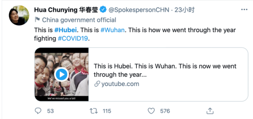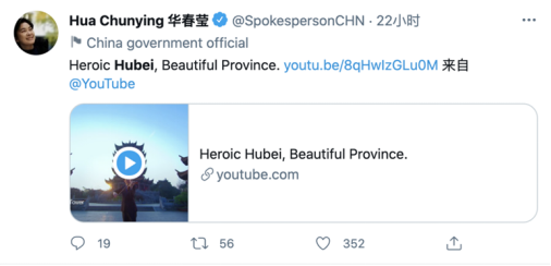外交部发言人华春莹推特账号推介湖北形象片和主题宣传片