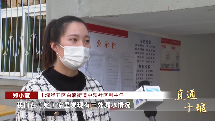 十堰经开区白浪街道中观社区副主任 郑小慧:“我们在她家里发现有三处漏水情况,我们把这个问题发布到‘365有服务’平台上,让我们的包联单位和下沉党员干部进行认领。”