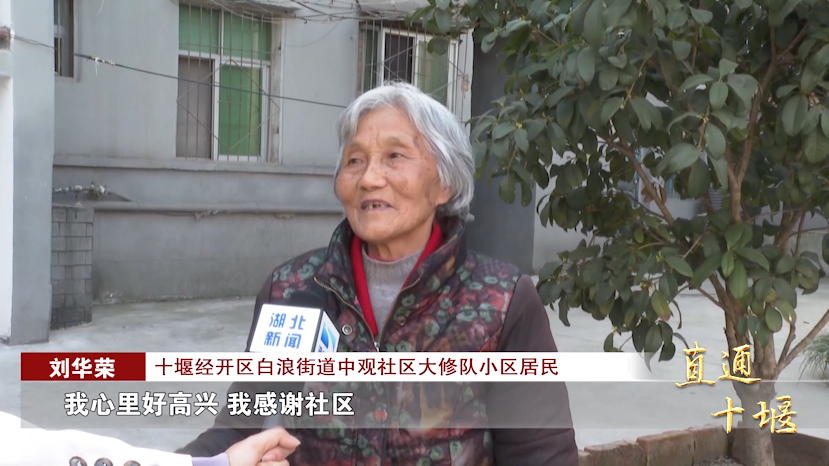 十堰经开区白浪街道中观社区大修队小区居民 刘华荣:“社区就马上有反映,有回应,我心里好高兴,我感谢社区。”