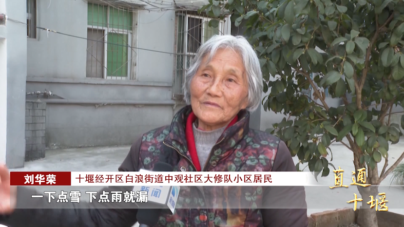 十堰经开区白浪街道中观社区大修队小区居民 刘华荣:“一下点雪、下点雨就漏,床上睡觉睡不成,漏在床上拿盆子接水,我一个人也没得办法。”