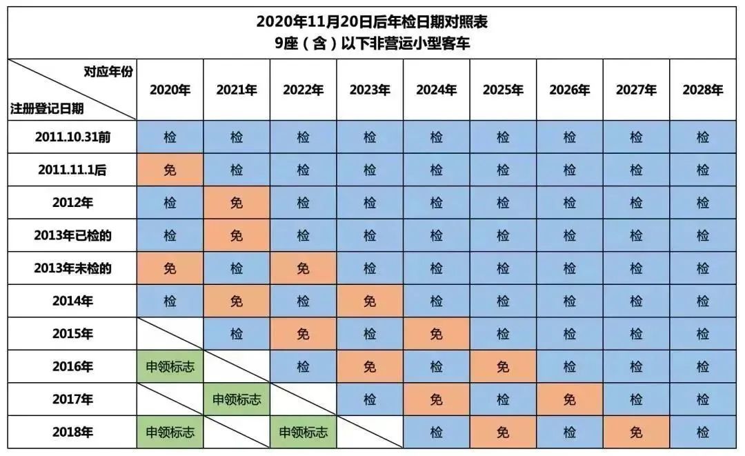 不清楚车辆该何时上线年检的驾驶员可以对照以下表格: