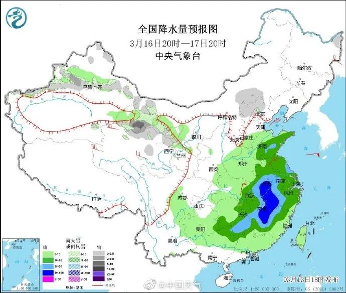 3月16日至3月17日这股冷空气的到来,将制造全国范围内的大范围雨雪。湖北、四川、湖南等地有可能迎接入春以来最大规模的雷电对流天气,大家要留意临近天气预报,雷雨天注意防雨防雷电。