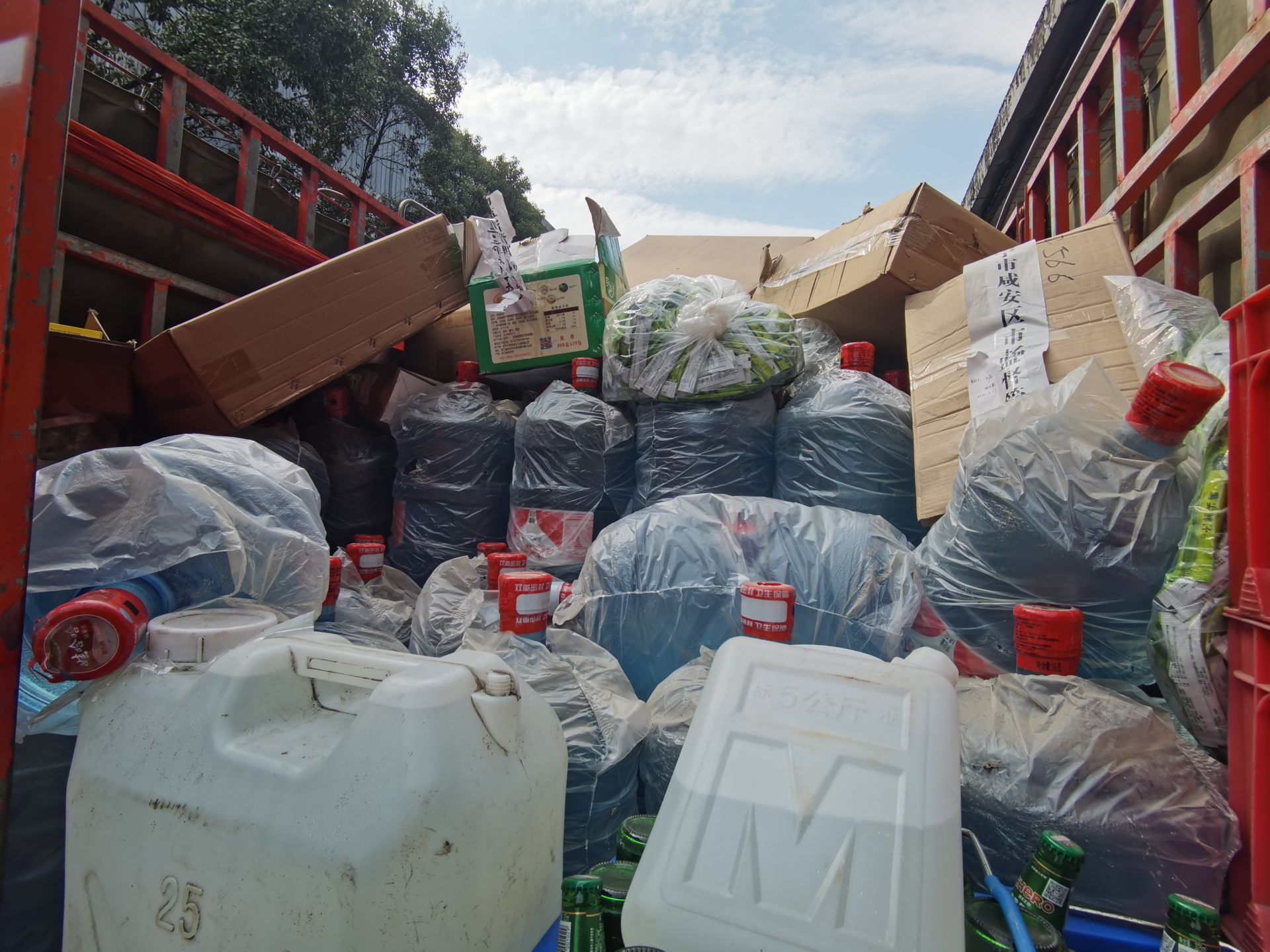 咸安区市场监督管理局党组成员 徐钢 :今天在这个销毁现场,主要是咸安区市场监管局在2021年以来,在市场执法中查获的一些过期食品、过期药品、医疗器械,还有假冒伪劣商品,还有一些通过检验检测查获的不合格的商品,数量大概有5吨左右。