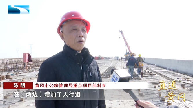 黄冈市公路管理局重点项目部科长 陈明:“这座桥原来是双向四车道,现在为了方便两岸的群众的通行,后来增设了两车道,就是变成了双向六车道,在(两边)增加了人行道 。”