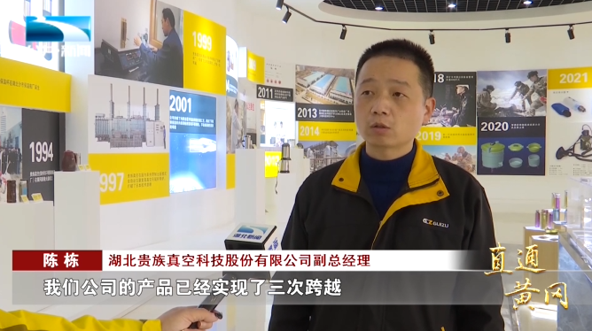 湖北贵族真空科技股份有限公司副总经理 陈栋:“我们公司的产品已经实现了三次跨越,在材质上,从不锈钢真空杯、玻璃真空杯,到现在的纯钛真空杯,从应用领域上,从原来的民用、警用、军用,发展到现在的空天装备。”