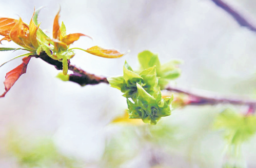 国宝级绿色樱花——御衣黄樱花含苞待放。赵丽 摄