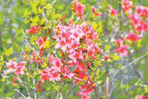 木兰云雾山的万亩杜鹃花海染红了整个山坡,姚家山景区香溪谷营地的山坡上也可远望见点点艳红,溪流旁的白杜鹃也竞相绽放。姚家山景区相关负责人黄培介绍,“倒春寒”天气将映山红的花期推迟了3至5天,进入4月就是在姚家山赏映山红的最好赏花时间。