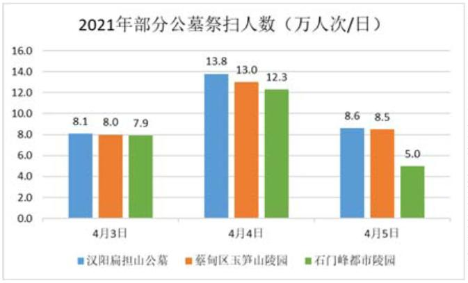 根据历史交通数据预测,本周末3月26日至27日错峰扫墓将迎来清明前高峰,黄陂归元陵园、蔡甸区玉笋山陵园、汉阳扁担山公墓、东新石门峰都市陵园祭祀人流量日均可能达7万以上。