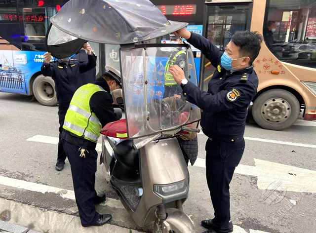 执法民警对发现非法安装遮阳伞的车辆一律现场依法拆卸和收缴,坚决做到发现一起、查处一起。