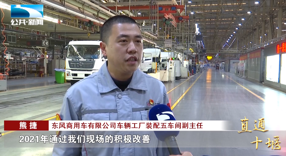 东风商用车有限公司车辆工厂装配五车间副主任 熊捷:“2021年通过我们现场的积极改善,总装八线的生产效率得到了显著提升,达到了每小时20台车的生产能力。”