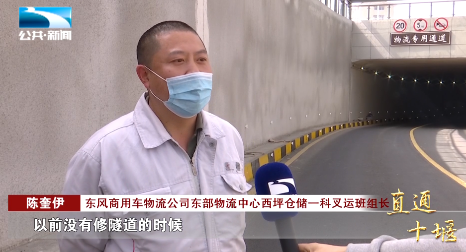 东风商用车物流公司东部物流中心西坪仓储一科叉运班组长 陈奎伊:“以前没有修隧道的时候,运输效率低,每趟车都要行走十分钟,如果有急件的时候就会影响线上停装,隧道修好以后我们运输车辆单程只要三分钟。”