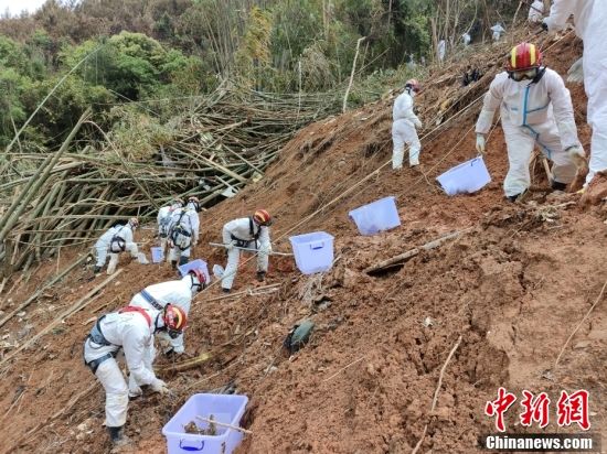 3月25日,广西武警官兵和救援人员在事故现场核心区展开搜救,坠机事故搜索范围扩大到近20万平方米。