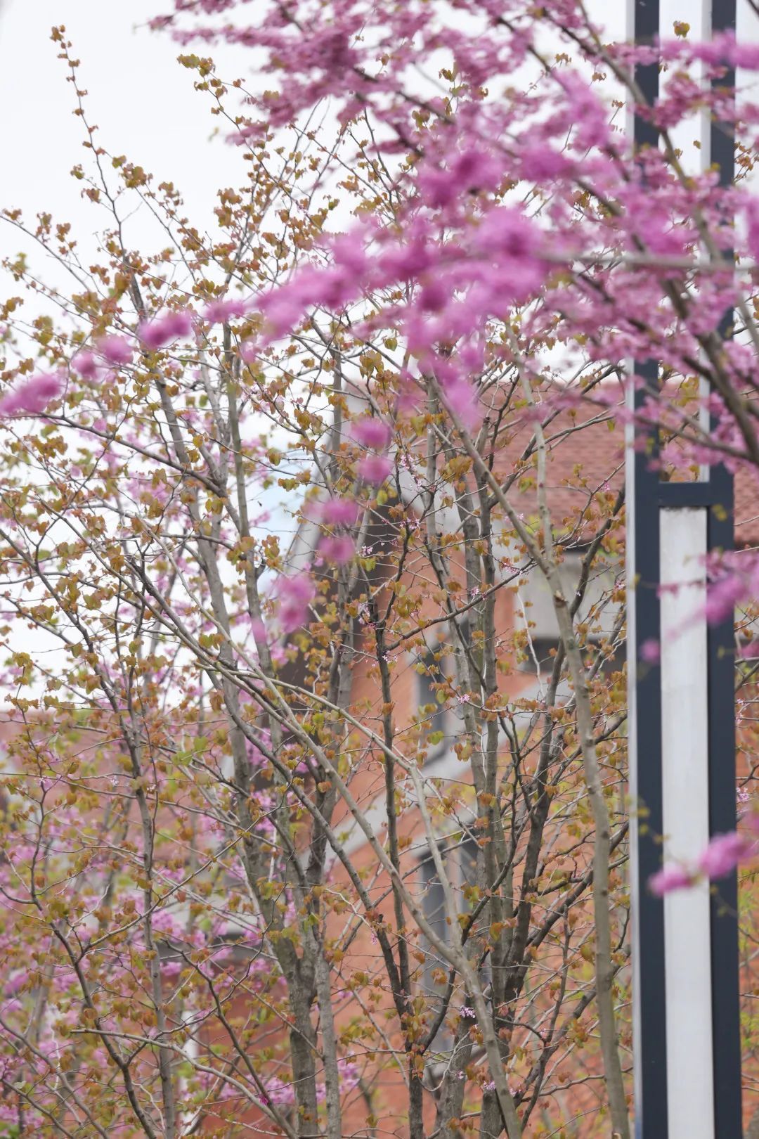 春天,是两种“红”的冲撞。有人说,巨紫荆花的颜色,被红房子掩盖,远看似乎如此。
